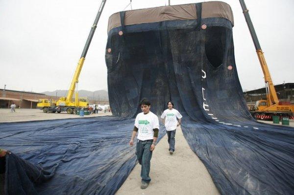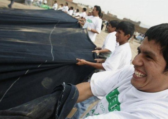 Peruvian seamstresses hoping to snag a Guinness World Record for sewing the largest pair of blue jeans.