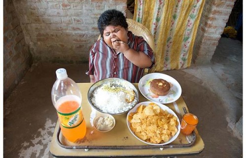 Suman Khatun, a five year-old obese Indian girl who suffers from a suspected hormonal imbalance, is so insatiably hungry she is eating herself to death, doctors fear.